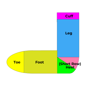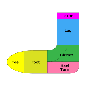 手編みの靴下っていくつかのパーツが組み合わさって作られています。